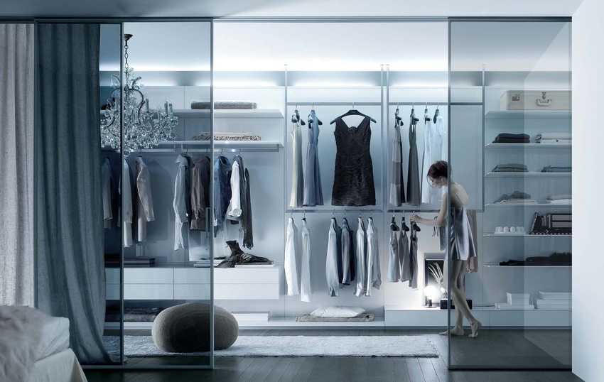 Для гардеробных используются новейшие материалы, большое количество света и открытое пространство.