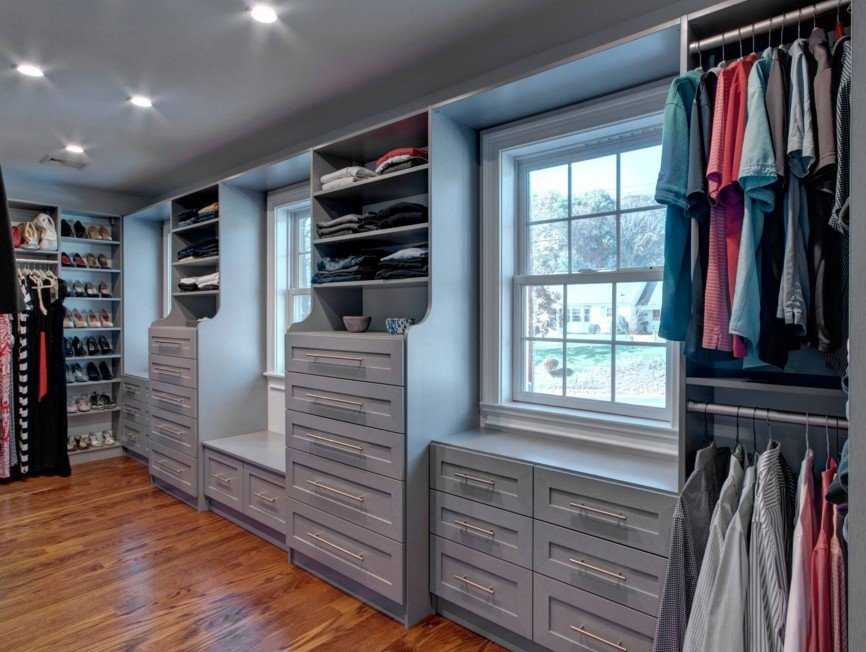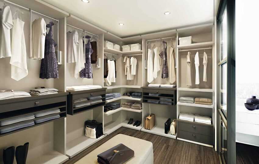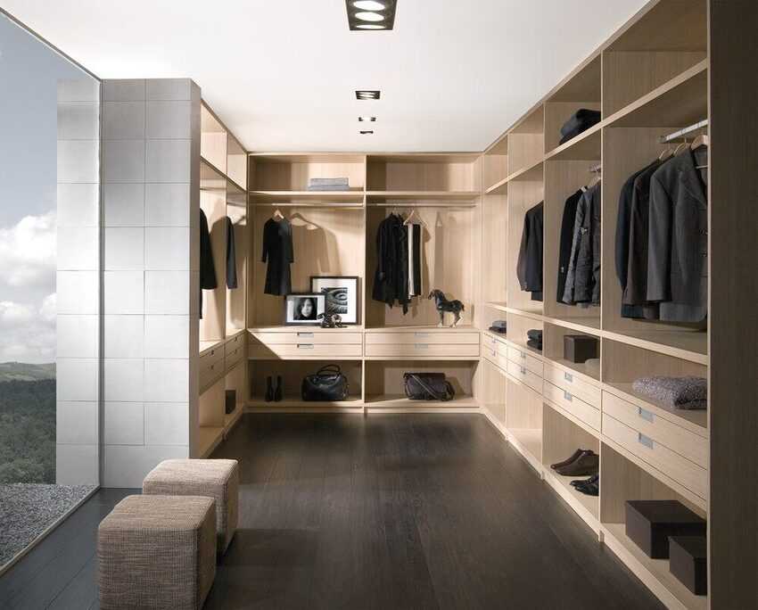 На планировку гардеробной в первую очередь влияют размеры и физические возможности жилого пространства.