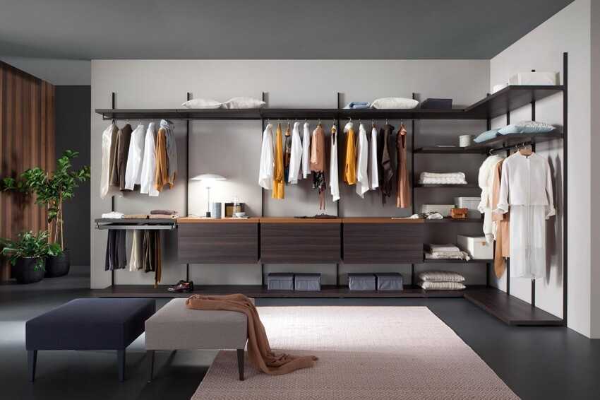 Элементы таких гардеробных можно менять местами и заменять при необходимости.