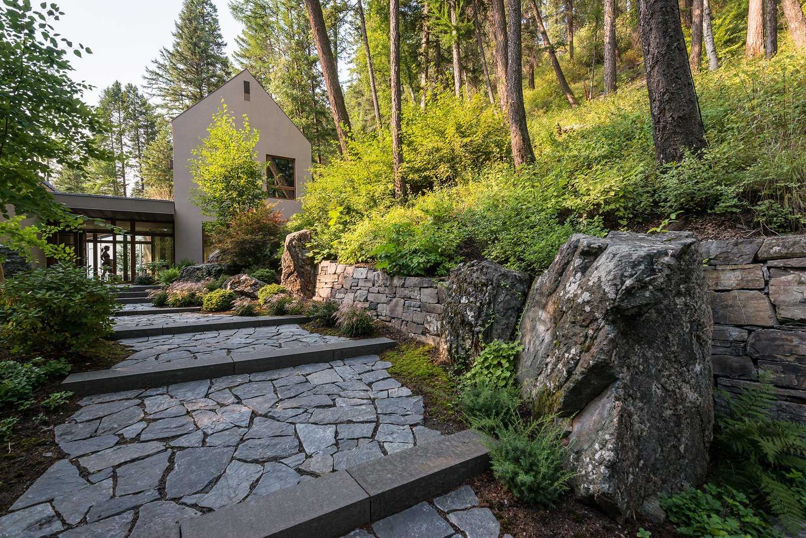 Для подчеркивания первозданной природы, целесообразно использовать кварцит, диорит, базальтовый камень и кремнистый сланец.