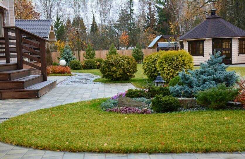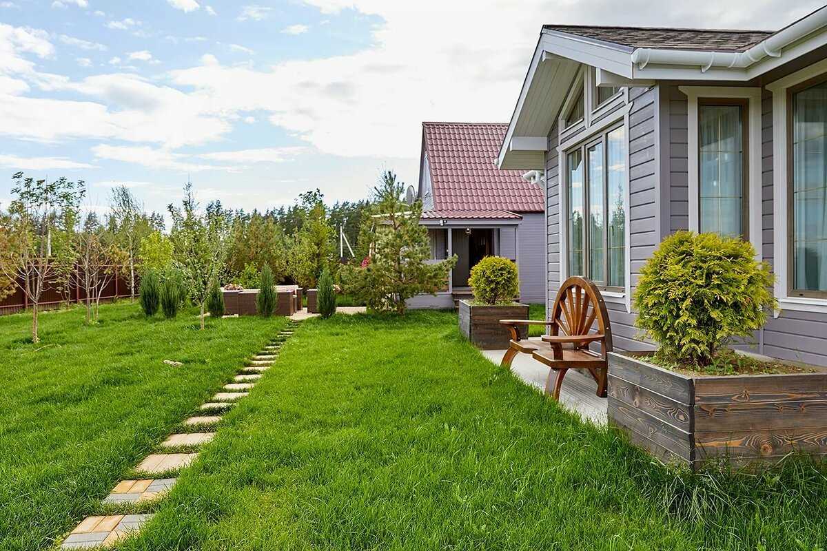 Дачный дом в скандинавском стиле как будто окружен лоскутком леса. На участке в скандинавском стиле должно быть много хвойных культур, кустарников и травы.