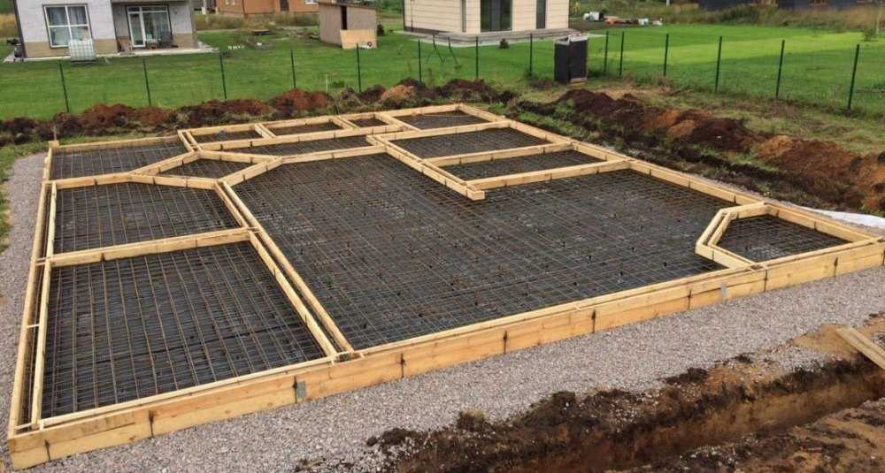Плитный фундамент — монолит из бетона или железобетона, на котором возводятся стены. Обустраивается следующим образом:
