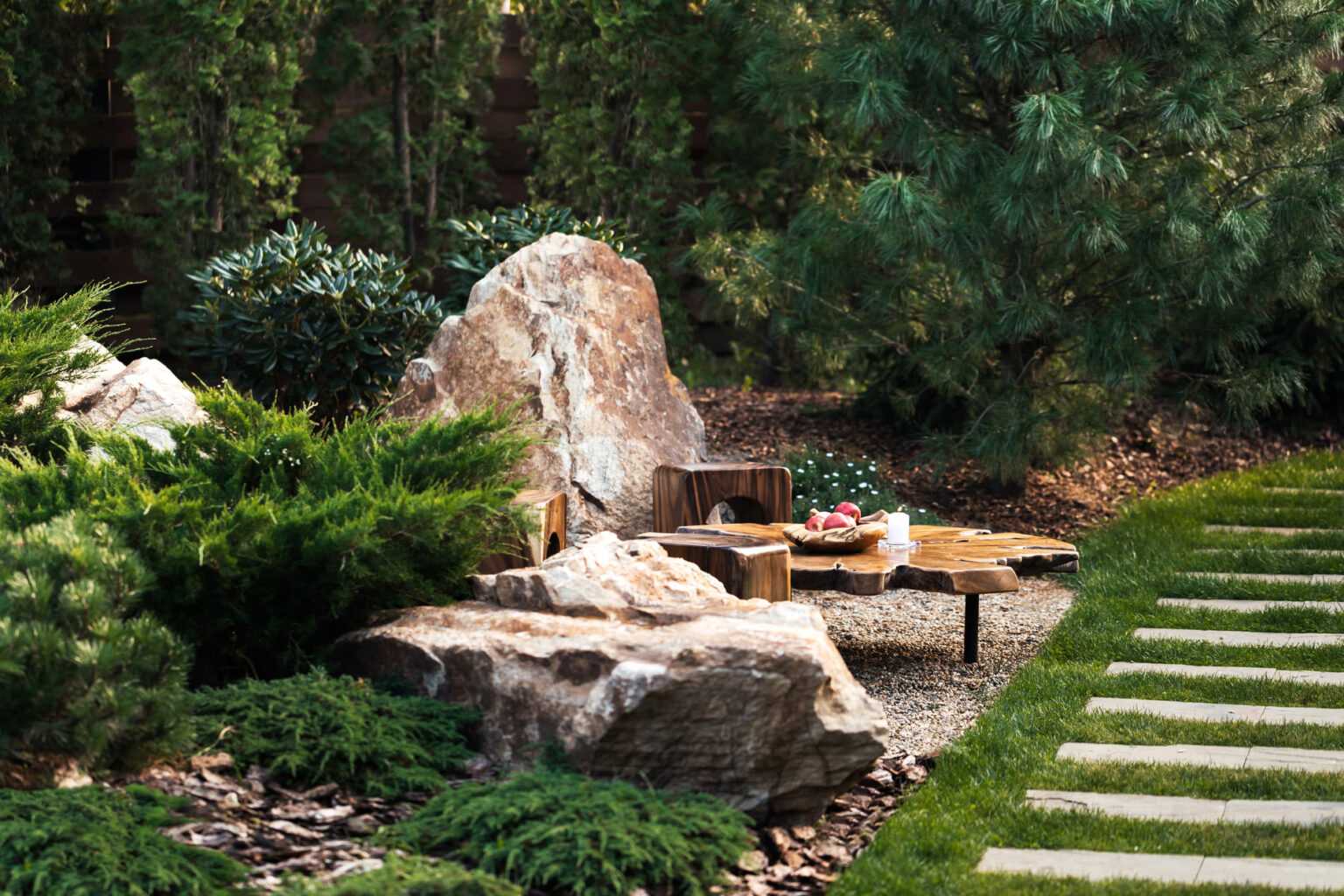 Скандинавский стиль подразумевает отказ от искусственных декораций. В качестве альтернативы применяются массивные валуны и камни. Размещать их нужно так, чтобы не прослеживалась системность.