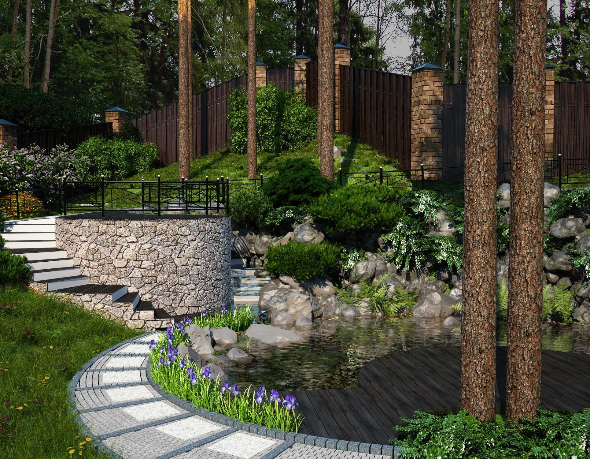 наличие искусственного водоема, который должен иметь неправильную форму;