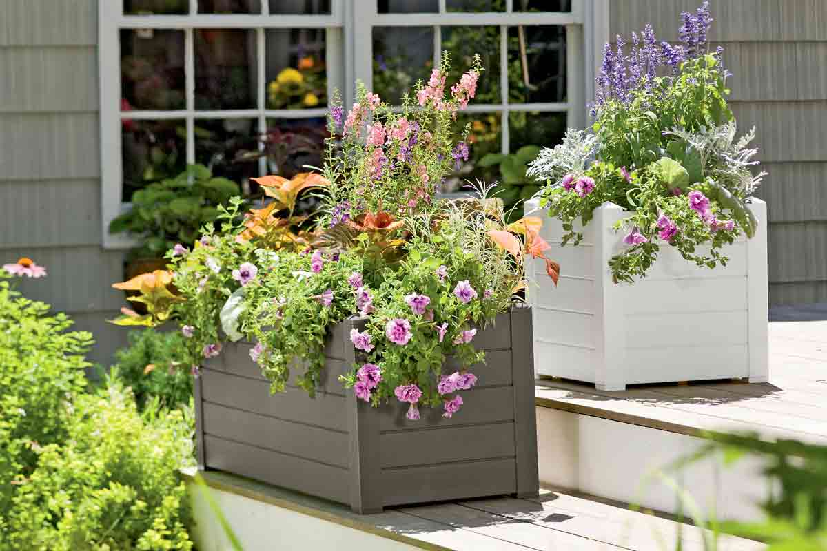 Если планируется посадка растений с быстрыми темпами роста, размещайте их в горшки, наполненные плодородной почвой. Поставьте емкости в плетеные корзины или коробки, выполненные из береста.