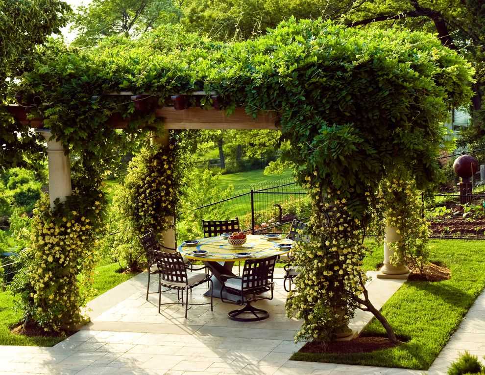 Терраса, беседка, пергола в скандинавском стиле оформляется хмелем, плющом, жимолостью, глицинией или клематисом. Оригинально будет смотреться вьющаяся фасоль.