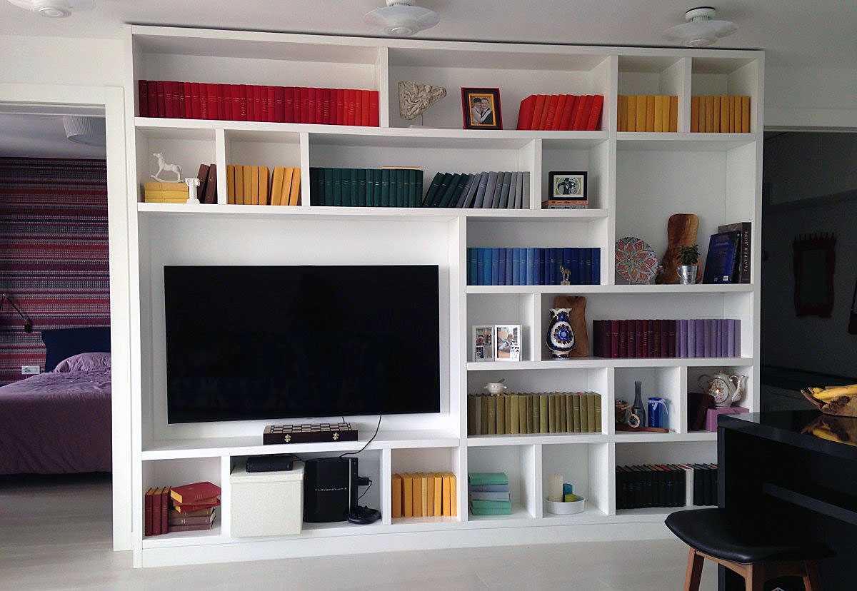 вместо массивных шкафов можно использовать легкие и не загромождающие пространство стеллажи и полки;