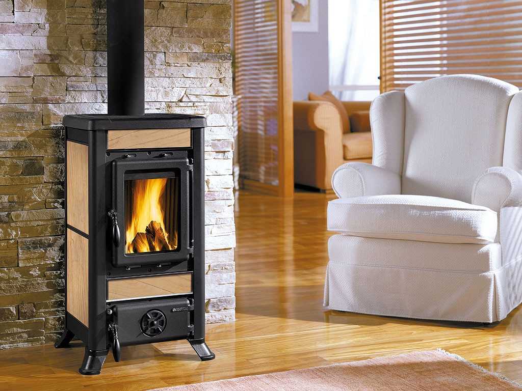 Печь не только отапливает дом, но и создает оригинальный дачный интерьер. Бывает стационарной, облицованной плиткой, и передвижной, которая может быть установлена в любой комнате. На печи можно готовить пищу, и она дешевле камина. Чаще всего располагается на кухне.