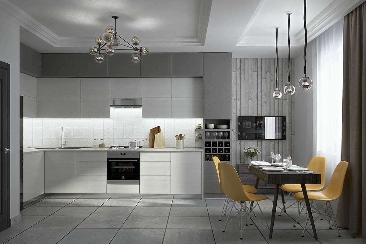 Это один из самых распространенных вариантов дизайна кухни. Современный стиль включает в себя простоту, элегантность и практичность. Четкие линии, мебель со стальными фасадами, экологичные предметы, лаконичные аксессуары. В сочетании с серыми оттенками современный интерьер может выглядеть как дерзко (в случае расстановки ярких акцентов в виде креативной посуды, необычного освещения и текстиля с геометрическими узорами), так и спокойно (на фоне натуральной мебели и декора hand made).