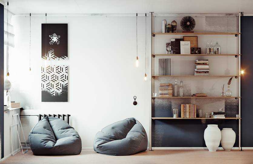 К подростку будут приходить друзья — нужно продумать места и для них. Хорошее решение — кресла-мешки: аккуратно сидеть с прямой спиной — это точно не про подростков, а в таком кресле удобно «развалиться» как хочется. Плюс такие модели мобильны, их можно купить сразу несколько, а после ухода гостей прятать в гардероб или шкаф.