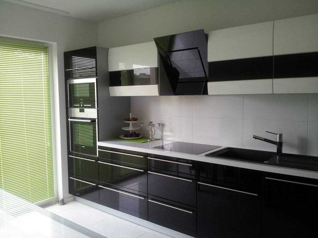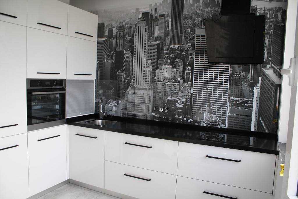 Черными могут быть некоторые элементы фасадов, кухонный фартук, пол. Главное, чтобы доминирующим оставался именно белый цвет, а черный только подчеркивал его чистоту и совершенство.