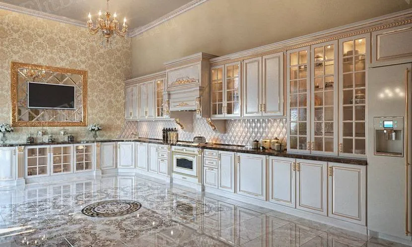 Светлая кухня с золотой патинойИсточник yandex.ru