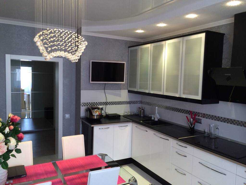 Черно-белая кухня — пожалуй, это один из самых стильных вариантов оформления. Такой интерьер смотрится смело и дорого. В белом цвете может быть выполнен кухонный гарнитур, стены, текстиль.