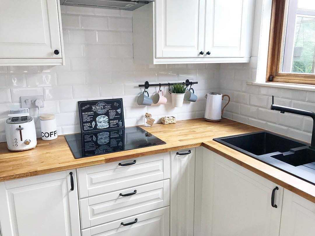 Еще нам очень по душе белые кухни с деревянными столешницами как в этой подборке фото.
