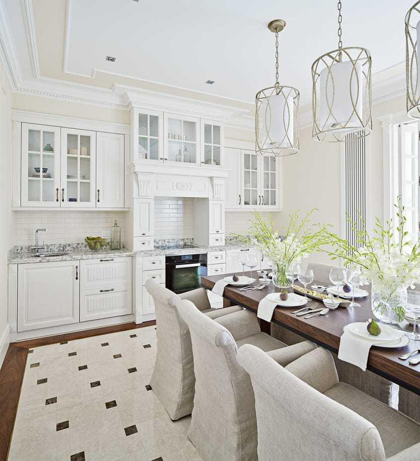Доминирующим белый цвет часто встречается на кухнях в классическом стиле