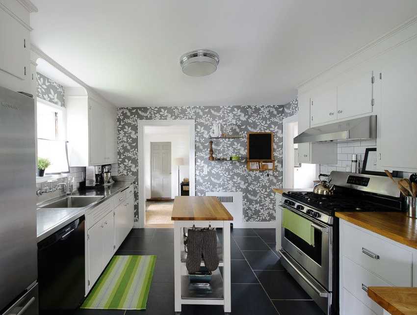 Главное условие для обоев на кухне – узор должен включать исключительно два тона