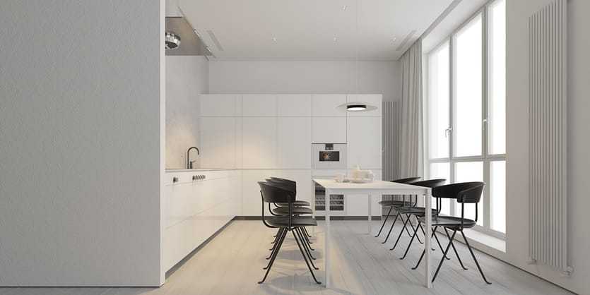 Чтобы кухня в белом цвете не разочаровала вас, особое внимание уделите отделке