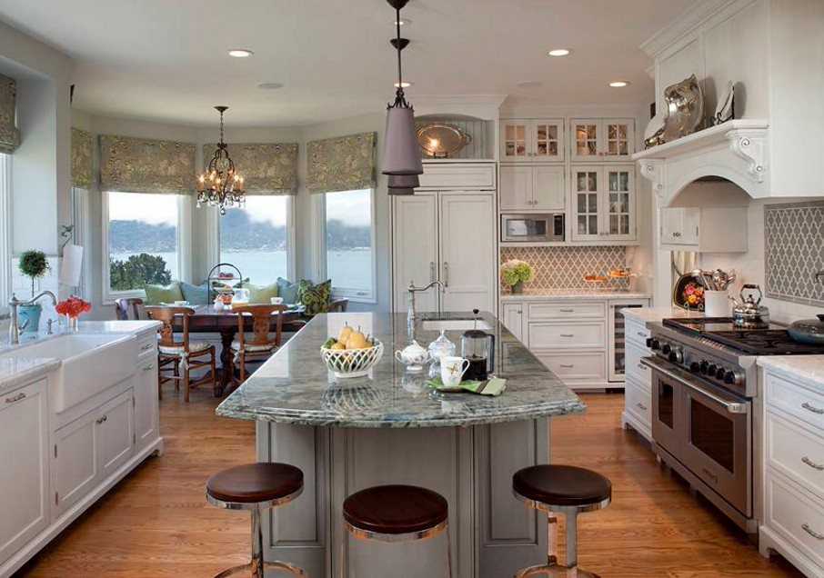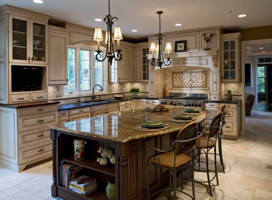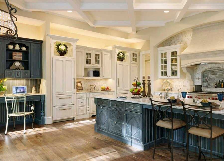 Интерьер большой кухни оформляются в различных стилях. Но если, например, большой квадратуры кухне в частном доме или в новостройке с современной планировкой больше подойдут интерьеры, выполненные в старых классических стилях.