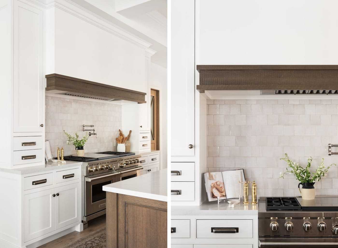 Часто выбор фартука для белых кухонь сводится к его отделке белой плиткой в стиле “кабанчик”. Беспроигрышный классический вариант, сохраняющий общую белизну кухни.