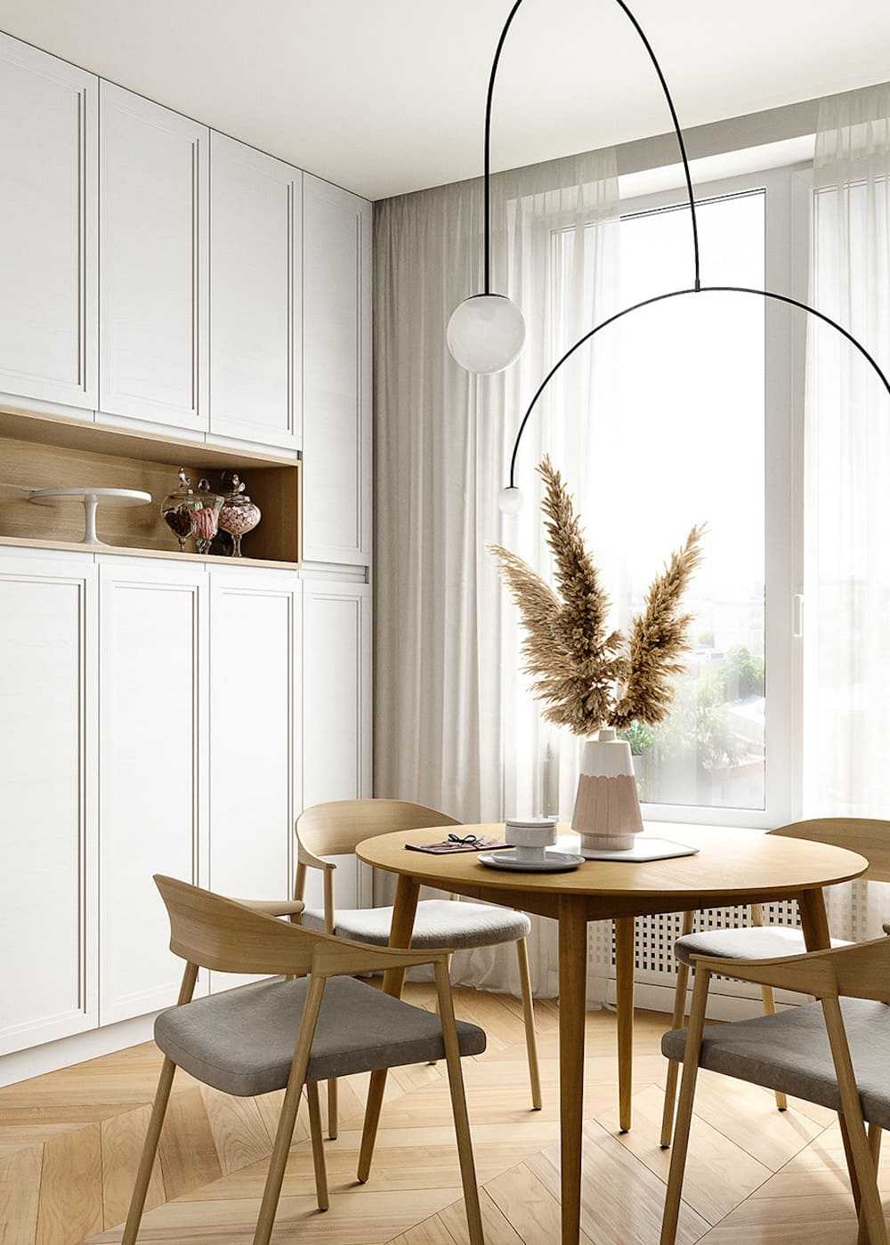 Это абсолютно нейтральный цвет, он подходит для любого стиля (от традиционного до современного). На белом фоне прекрасно выглядят произведения искусства и аксессуары, наполняющие пространство интересными контрастами.