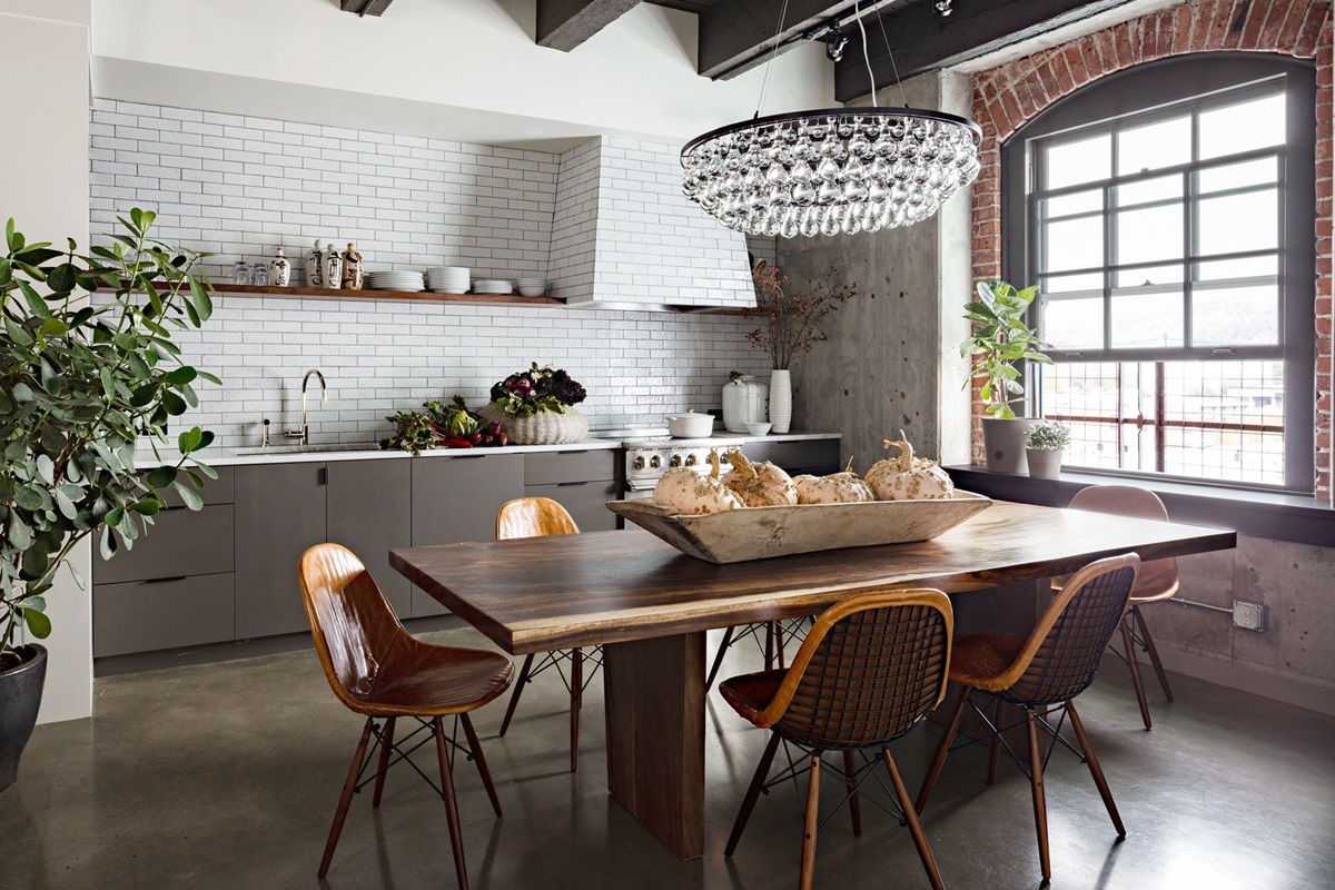 Безусловно, лучшее решения для лофта – кухня-столовая, без преград переходящая в гостиную. Она потребует избавиться ото всех второстепенных стен и перегородок, придать жилью пускай не подлинный промышленный масштаб, но достоверную иллюзию.