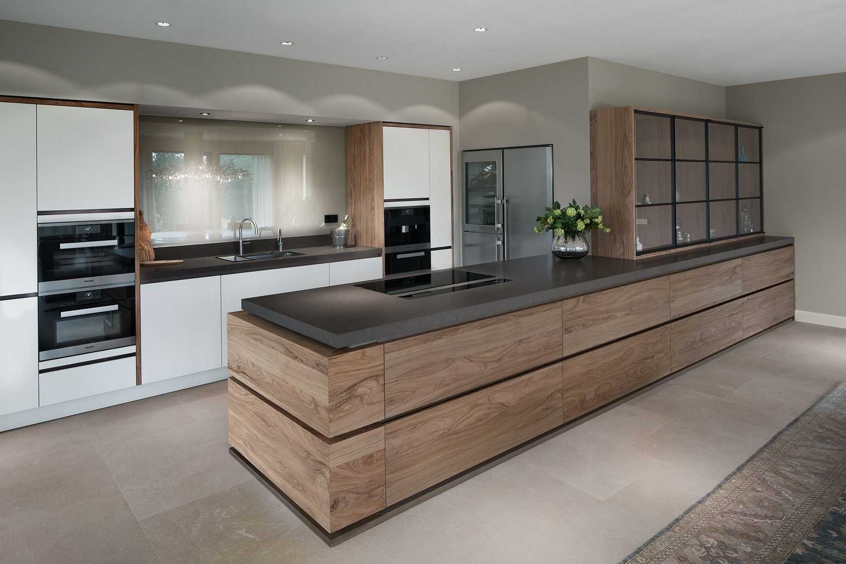 Кухня-остров подойдет для просторного помещения загородного дома, где одна из рабочих зон располагается посередине кухни отдельно от гарнитура. Это может быть разделочный стол, обеденное пространство и зона хранения посуды.