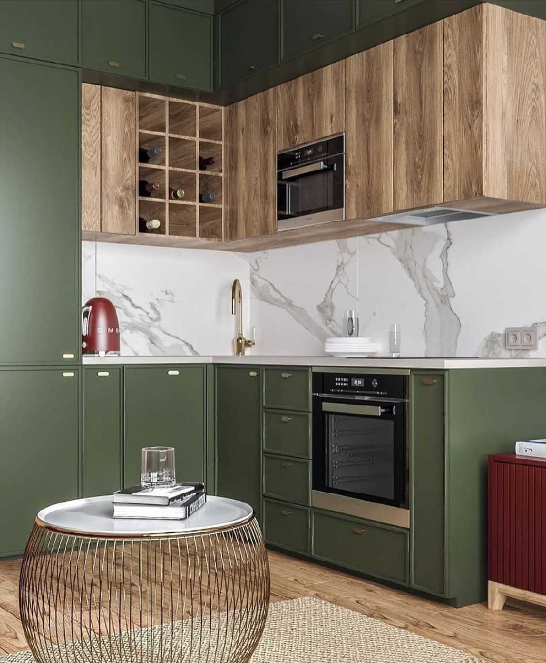 Одна из необычных цветовых комбинаций, которую люди выбирают при проектировании дома. Красное и черное комбо по праву считается самым выразительным сочетанием в мире дизайна интерьера.Такая кухня станет отличным выбором для женщин, которые любят эти два цвета.