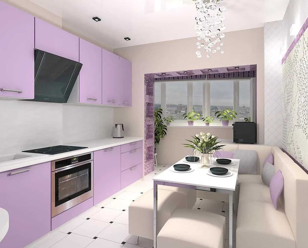 Обустройство интерьера маленькой кухни в фиолетовых тонах