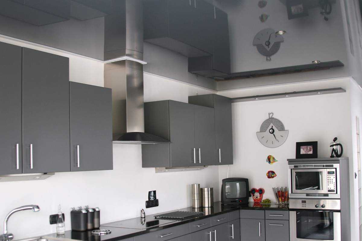 Белая кухня с серыми потолками – самый необычный дизайн кухни в серо-белом цвете