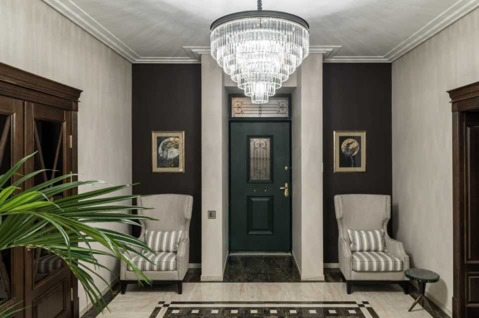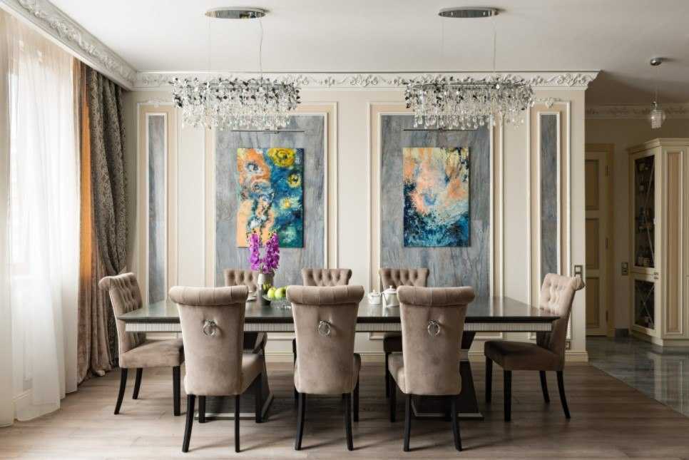 Красивая винтажная мебель и изысканные светильники из хрусталя станут необходимым дополнением.