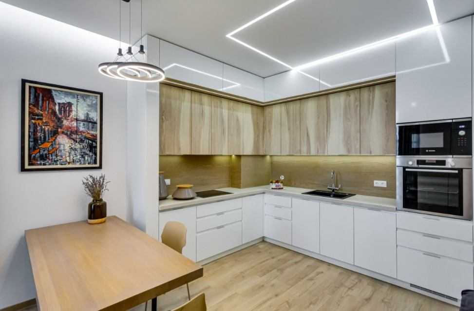 Именно поэтому необходимо избегать нагромождения элементов декора и мебели, оставлять больше свободного пространства. При этом место для приготовления пищи должно быть удобно, компактно и аккуратно.