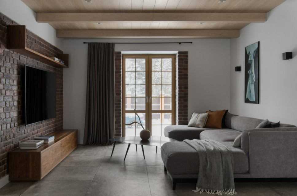 Рекомендуется минималистический стиль с использованием натуральных материалов. Отлично будут смотреться деревянные балки, кирпичные стены и натуральный камень для оформления всей центральной части этой зоны.