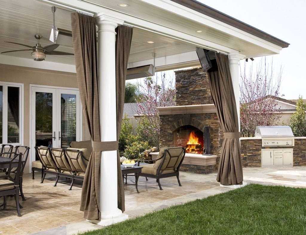Во втором типе дизайна допускается использование в качестве основного строительного материала кирпича или дерева. Вид отделки выбирается исходя из финансовых возможностей хозяев – это может быть декоративный камень, обычная краска со штукатуркой. Главное, чтобы заходя в такую летнюю кухню, от нее веяло гармонией и изысканным благородством, которые должны проявляться и в выбранной цветовой гамме, мебели и украшениях.