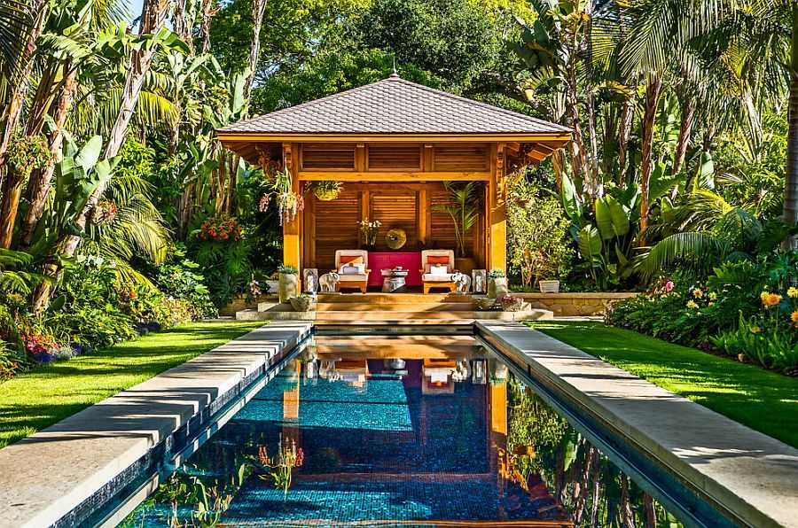 Удивительный тропический сад и бассейн вдохновлены элементами дизайна Бали