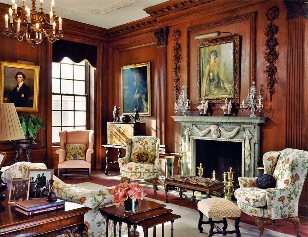 Кроме того, в викторианской гостиной должны быть установлены большие английские каминные кресла с «ушками». Они имеют мягкую спинку особой конструкции, которая обеспечивает защиту от сквозняков.