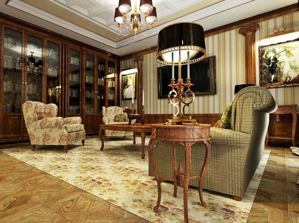Такой вариант дизайна — настоящая находка для тех, кто хочет иметь статусную гостиную. Викторианский стиль в интерьере главного помещения в доме никогда не выйдет из моды.