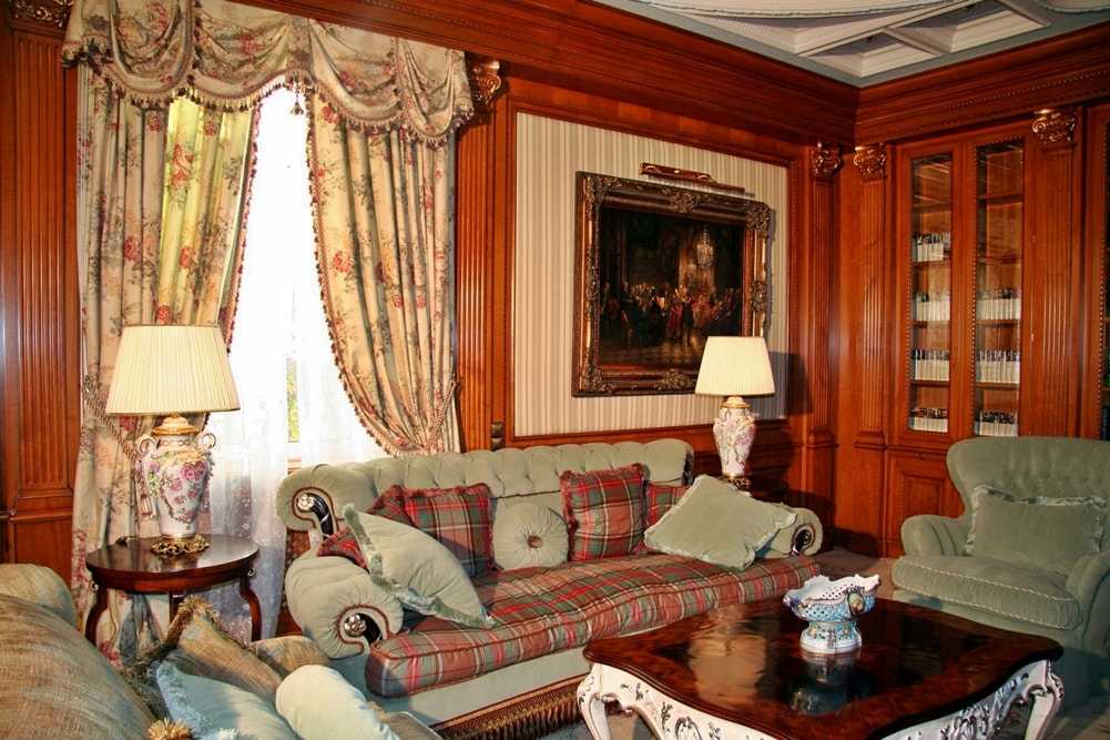Если вы отделываете гостиную в стиле интерьера викторианской эпохи, то особое внимание рекомендуется уделить «оконному» текстилю. Обязательным является использование «пары» гардина и портьера. Последняя должна быть выполнена из плотной дорогой ткани