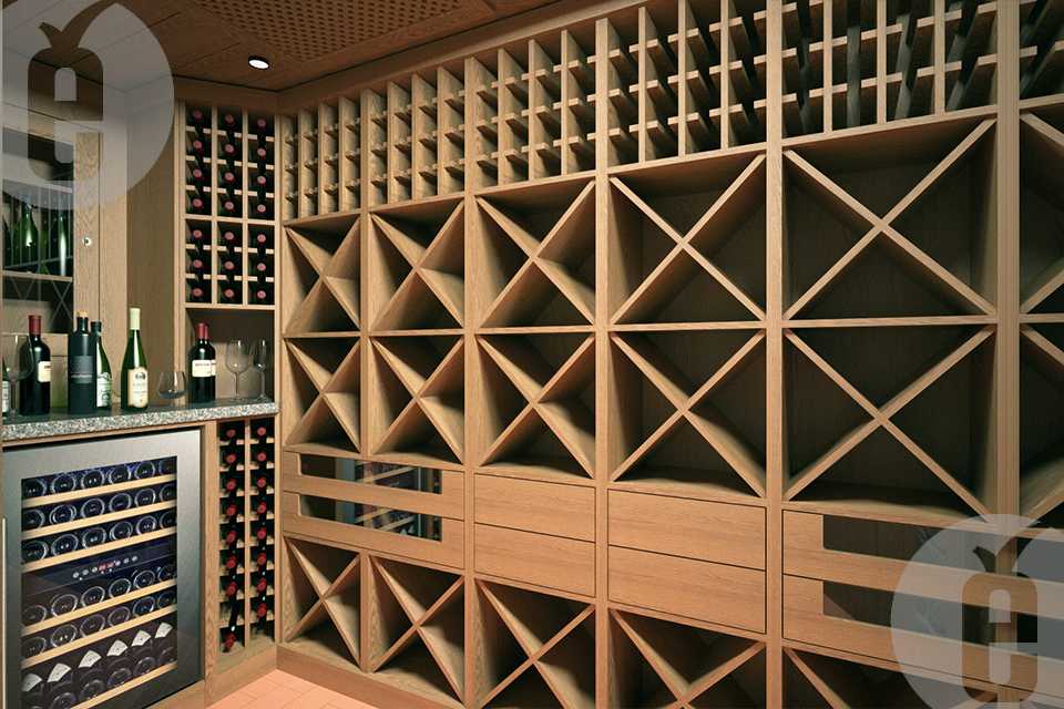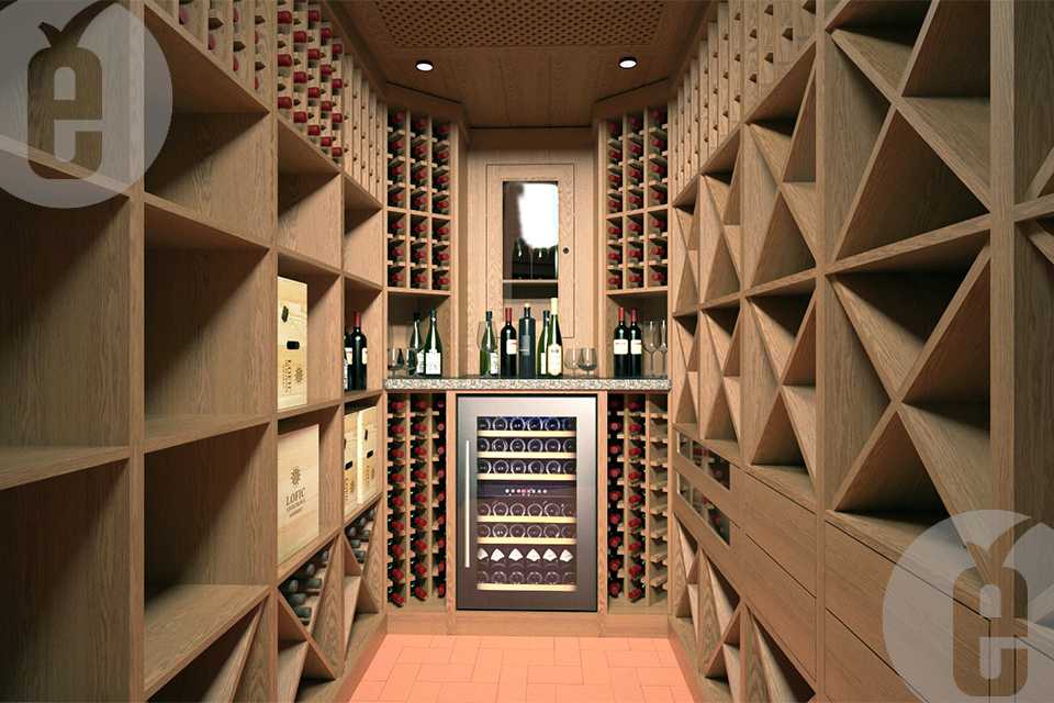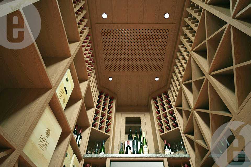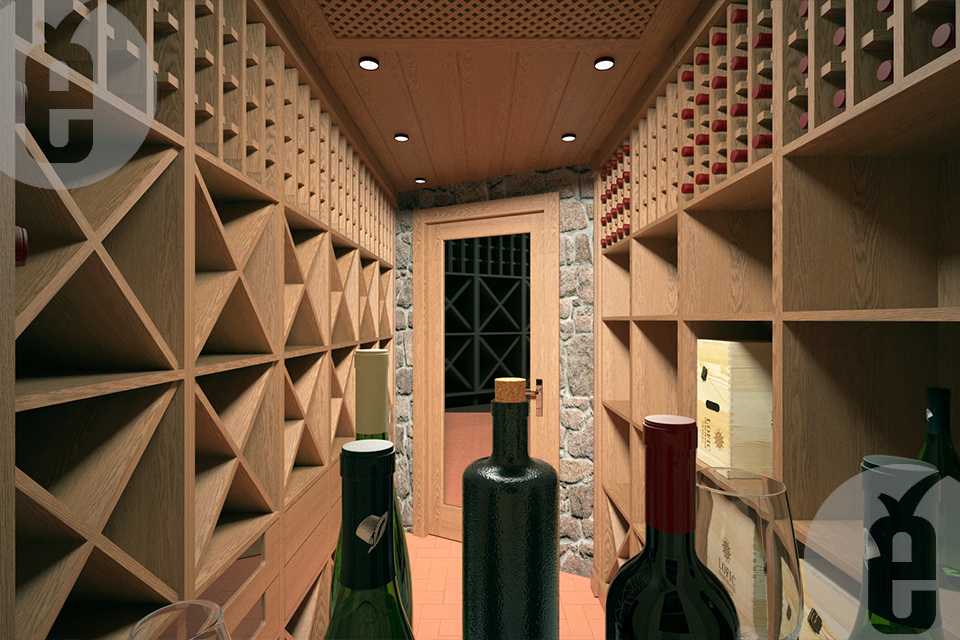 Полки в погребе должны присутствовать двух видов: горизонтальные, чтобы бутылки лежали, и вертикальные, соответственно, чтобы бутылку можно было поставить. Вертикальные полки нужны для того, чтобы ставить туда бутылки за неделю до употребления, чтобы осадок успел осесть. Винные шкафы нужно располагать по периметру подвала, а в центре обычно ставят мини-бар или стол и стулья.