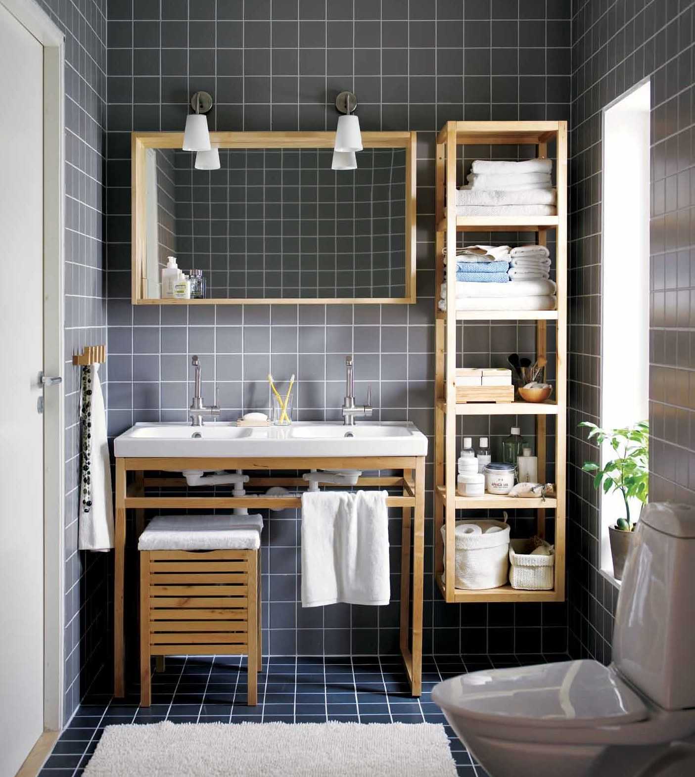 Для совсем небольших ванных комнат есть варианты поменьше. Даже в них найдется место для хранения ванных принадлежностей.