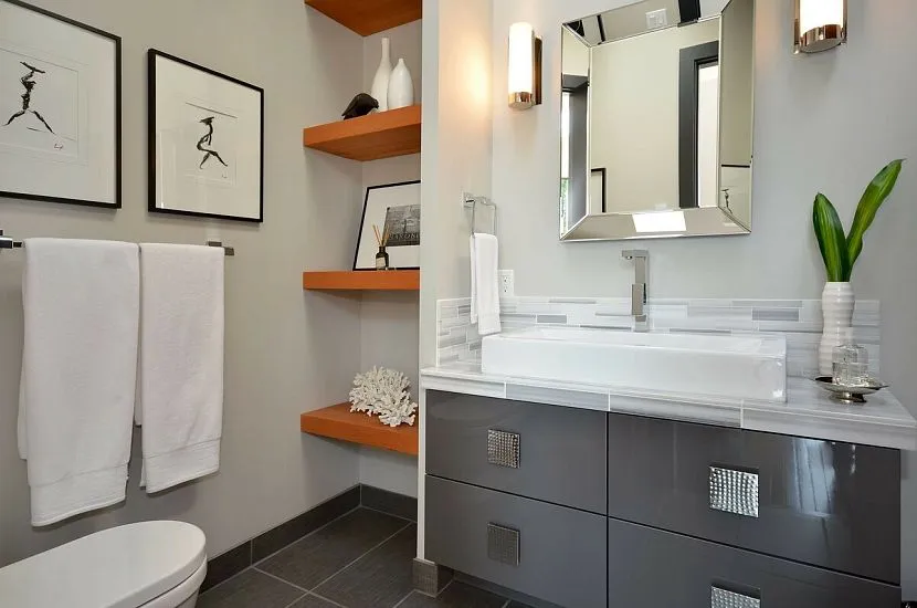 При обустройстве мест для хранения в ванной комнате обращайте внимание на дизайн помещения. Все полки, ящики и тумбы должны органично вписываться в пространство, создавая единый гармоничный стиль