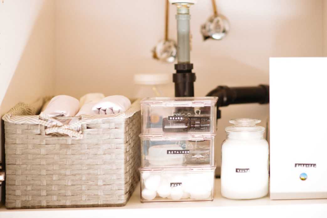 Третий и главный способ решить проблему хаоса в шкафчике под раковиной – использовать лотки, корзины, коробки или контейнеры.