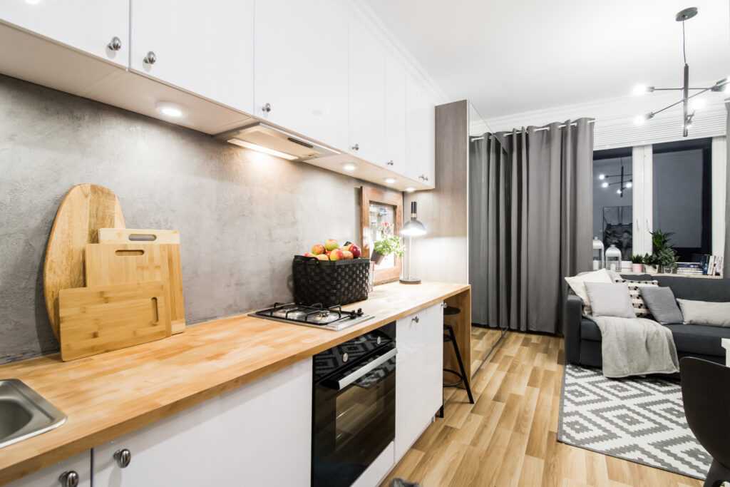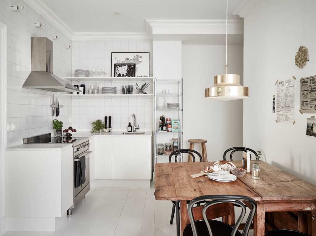 Тут с большего вкусовщина, но есть один универсальный вариант — белая кухня с деревянной столешницей. Это идеальный вариант по комбинации внешнего вида, цены и практичности. А ещё их практически нереально испортить. Серьёзно, многие пытались и делали всё остальное просто ужасно, но получалось всё равно как минимум неплохо.