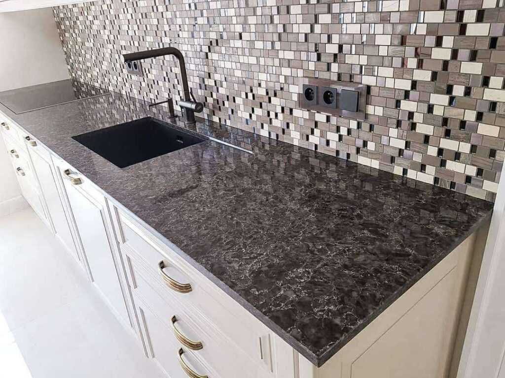 Кварц является очень прочным материалом, а при нанесении полиэфирной смолы на кварцевую столешницу он становится непористым, стойким к загрязнениям и легко моющимся. В отличие от гранитных, мраморных или бетонных столешниц, здесь нет необходимости беспокоиться о герметизации, кондиционировании или полировке.