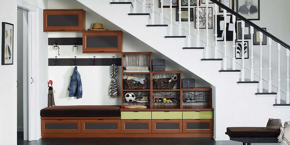 Встроенная под лестницу мебель обладает несомненными достоинствами:
