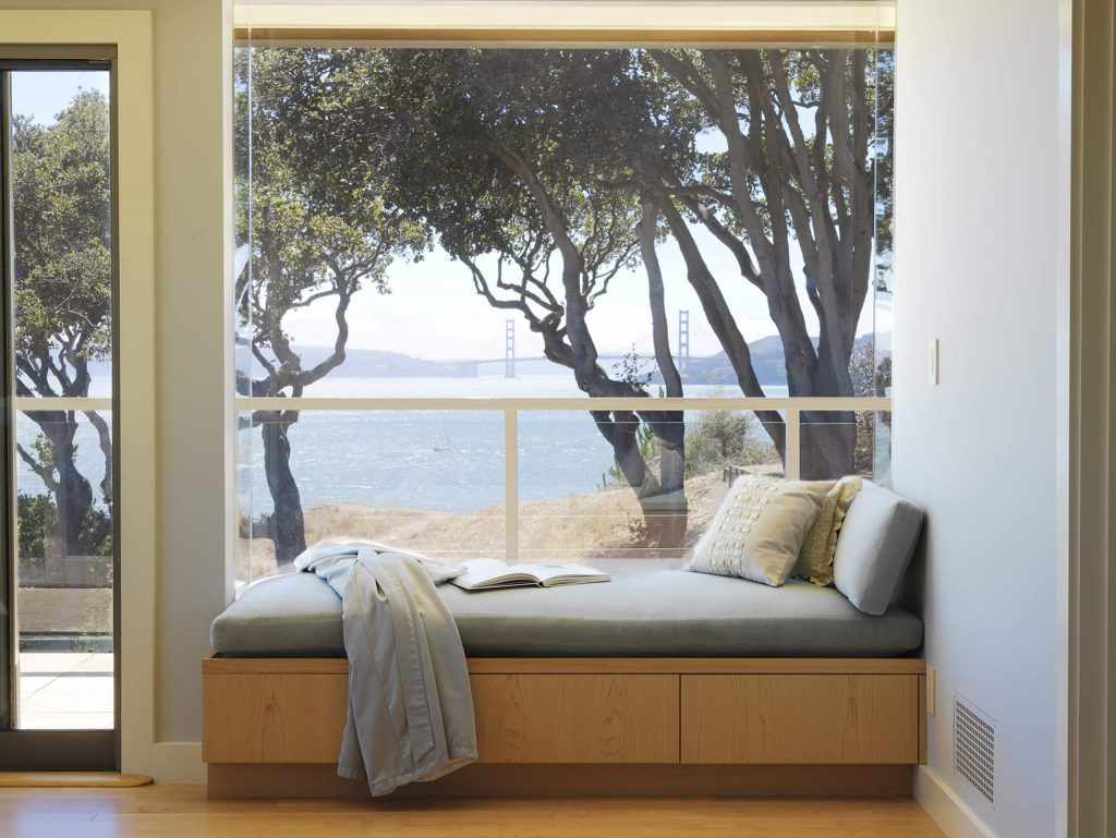 С другой стороны, никогда не пытайтесь обставить своё окно слишком хитроумно. Хотите, чтобы ваш подоконник выделялся из общего дизайна квартиры? Действуйте! Но не перестарайтесь. На фото снизу, предоставленном John Lum Architecture, Inc, вы можете видеть чудесное сочетание красиво оборудованного подоконника с необычными красно-фиолетовыми подушками.