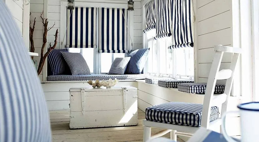 Чтобы подчеркнуть морской стиль с помощью текстиля, необходимо придерживаться следующих рекомендаций: