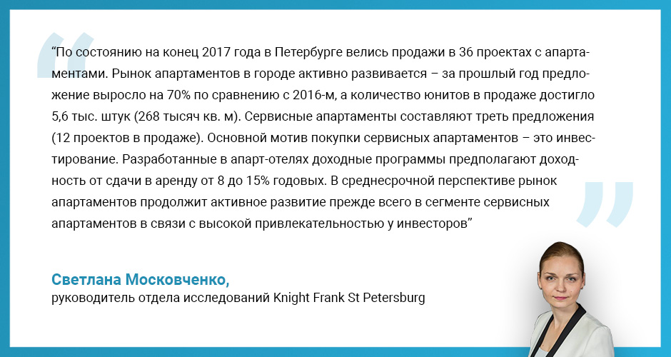 Я считаю, что пока сохраняется ценовая разница с квартирами, а также есть перспектива приравнивания апартаментов к жилью, этот формат недвижимости инвестиционно привлекателен. Кроме того, доходность апартаментов при сдаче в аренду выше, чем у квартир и в среднем составляет 7−9% годовых, тогда как квартир — всего лишь 5−6%. Покупка для постоянного проживания пока что также является выгодной. Да, за счет более дорогих ЖКУ и налогов со временем ценовое преимущество исчезнет, но на это потребуется около 50 (!) лет.