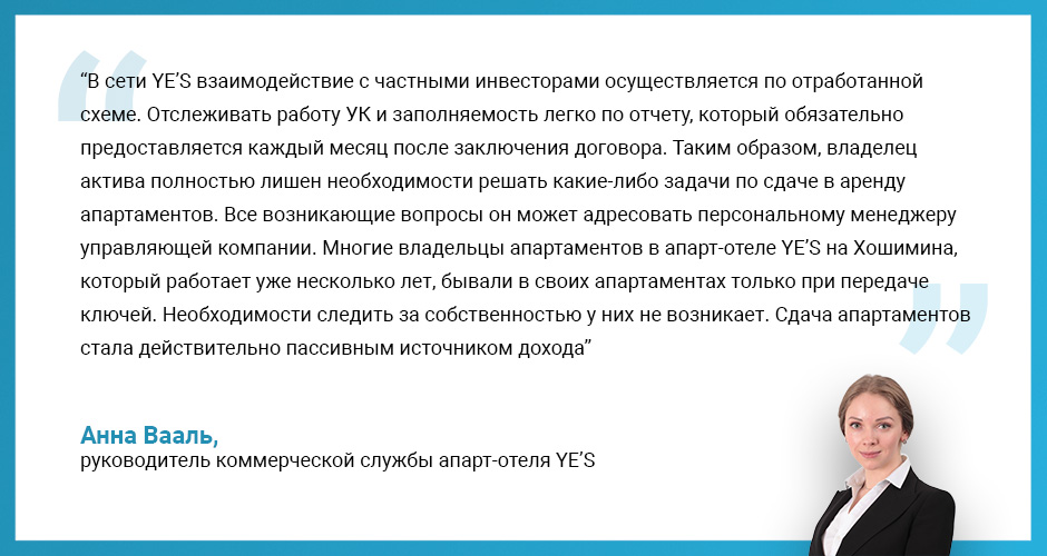 Важно, чтобы управляющая компания работала по стандартам гостиничных сетей. В таком случае будет гарантировано качество обслуживания