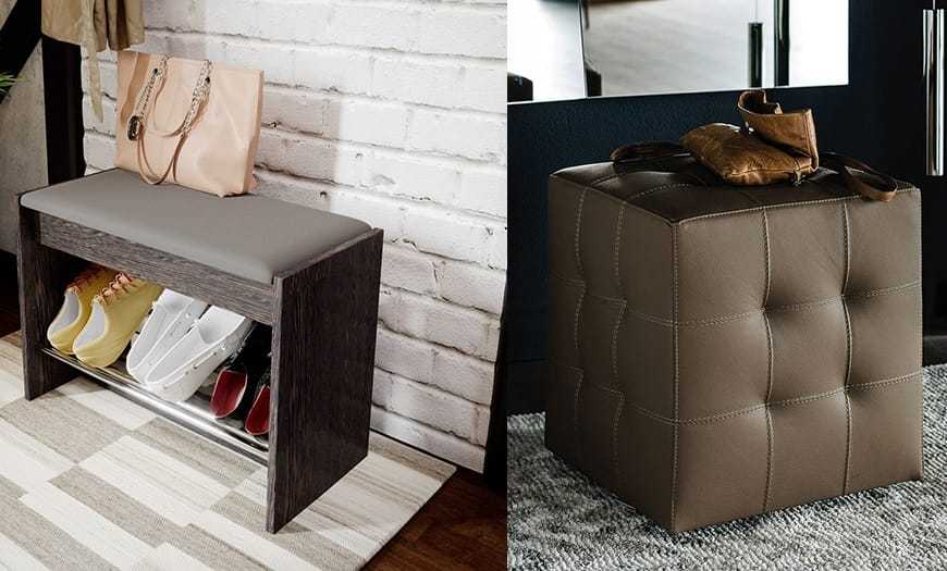 Если в прихожей достаточно места, позаботься о длинной скамейке или нескольких пуфиках