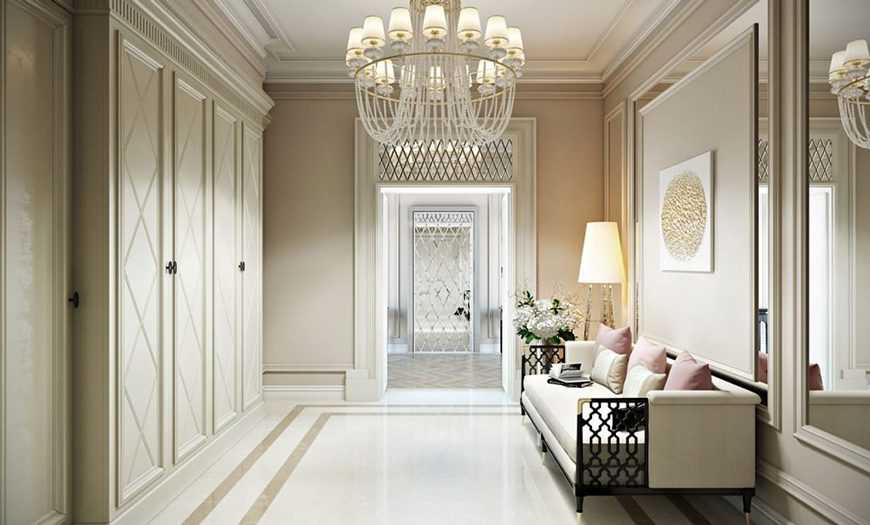 Классический стиль всегда и везде смотрится нарядно и красиво! И современные квартиры тут не исключение. Эта шикарная прихожая — тому явное подтверждение.